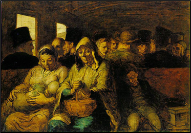 xxxxxIn the late 1840s he began to paint in oils, and his works in this genre, providing as they did a dramatically simple portrayal of everyday themes in a style akin to impressionism, were very highly regarded by the French painters Edouard Manet and Claude Monet. Among his best paintings was The Third Class Carriage, one of the versions of which is illustrated here. The French poet Charles Baudelaire greatly admired his work, and he was befriended by his fellow countryman, the landscape artist Camille Corot, who provided him with a house in his later years. In certain aspects of his style he owed much to the Spanish artist Francisco de Goya. He later produced sculptures of some of his caricatures both in clay and bronze. Towards the end of his life, Daumier gradually lost his sight, and he was nearly blind when he died in 1879. Illustrated below are: The Chess Players, Two Sculptors, and The Uprising.