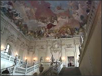 xxxxxIn his early years, some of his finest works were painted in the Lombard towns of Bergamo and Milan, and for villas in and around Venice. In 1750, however, such was his fame, that he was invited to the German town of Wurzburg. It was there, assisted by his two sons, Giovanni Domenico and Lorenzo, that he decorated the Bishop's palace with scenes of extraordinary beauty from classical mythology and German history – including episodes from the life of Frederick Barbarossa – and a colossal masterpiece of illusionism over the stairway depicting the four known continents (illustrated above). In 1762 he and his sons were invited to Spain by Charles III, and he worked there until his death eight years later. His major achievement here was his decoration of the recently completed royal palace. His work included The Apotheosis of Spain, a glorification of Spain's achievements, and, in the throne room, a magnificent ceiling fresco depicting Spain and Her Provinces.