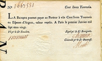 xxxxxProspects for a handsome return on investment looked good, and the company began well, but as public demand for shares rocketed, their value became unrealistic. By 1719 some 625,000 had been issued and Law, attempting to stabilise the position and, at the same time, reduce the huge national debt which had accumulated during Louis XIV's reign, began exchanging company shares for government bonds (illustrated). These securities, clearly regarded as a safe investment, fuelled a massive stock market boom, in other countries as well as in France.