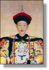 xxxxxAs we have seen K'ang-hsi, one of the greatest leaders of the Manchu (Ch’ing) dynasty, came to power in 1661. In 1682, having strengthened his hold on China, he took over the island of Taiwan and then, by the Treaty of Nerchinsk in 1689 (W3), settled his border with the Russians in the north. In 1696 he crossed the Gobi desert and conquered Outer Mongolia. Then in his final expedition, some 20 years later, he incorporated Tibet into his empire. But it was under Ch'ien-lung, his grandson (illustrated), the dynasty's fourth emperor, that the empire reached the full extent of its political power and territorial expansion. Marked out by K'ang-hsi as a worthy successor to the throne, he was especially educated with this in mind. In many ways, and certainly in his early years, he did not disappoint.