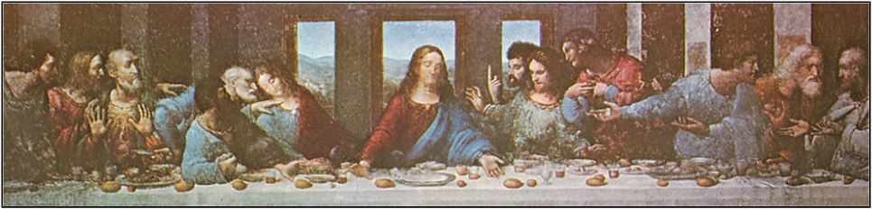 xxxxxIt was during this long stay in Milan, some 17 years, that he produced his masterpiece, The Last Supper, completed in 1497. Perhaps a better title would have been Word of Betrayal, because this scene captures the moment just after Christ has said that one of his disciples would betray him. The unique composition says it all. Christ sits at the centre, isolated, serene and resigned, whilst in dramatic contrast, his disciples, grouped in threes, recoil and gesticulate in stunned disbelief or agitated denial. Unfortunately, to paint this scene, Leonardo used oil on dry plaster and within a few years deterioration had set in. Over the years, many attempts have been made to restore the work, the most recent one of 1977 going some way to make good the damage.