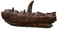 while working in Stonesfield quarries near Oxford in 1815. All of the same genus, he named his fossil Megalosaurus or Great Lizard, estimated to have been some forty feet in length. It proved to be the first published description of a dinosaur, though the term had yet to be coined! Among the pieces was a large lower jaw bone, here illustrated.