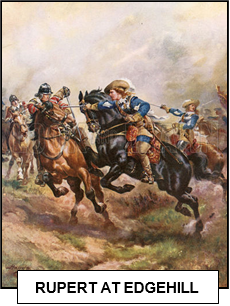 xxxxxPrince Rupert (1619-1682) was the king's nephew, being the third son of Frederick V (Elector Palatine of the Rhine) and Elizabeth Stuart, daughter of James I. For a short time - before being captured - he fought against the imperialists in the Thirty Years’ War, and the military experience he gained during this conflict stood him in good stead when he came to England in 1642 to support the royalist cause. High-spirited and daring, he showed exceptional ability as a cavalry officer, and was appointed commander of the king's cavalry at the age of 23. During the first eighteen months of the war he won a series of brilliant victories against the Roundheads - including the Battle of Edgehill and the capture of Bristol - and by June 1644 he had conquered most of Lancashire for the Royalists.