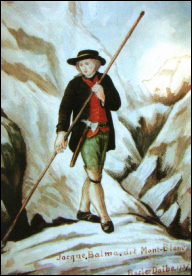 xxxxxIt was not until the latter part of the 18th century that mountains were climbed just because they happened to be there. Prior to this time, mountains were often thought to be the abode of evil spirits, or were climbed solely for purposes of scientific investigation, or the study of certain geographical features, such as glaciers. It was not, in fact, until 1760 that mountaineering became a sport in the modern sense of the word. It was in that year that the Genevan geologist Horace-Bénédict de Saussure (1740-1799) paid his first visit to Chamonix in the French Alps, and was struck by the beauty and the height of Mont Blanc, then reckoned, correctly, as the tallest peak in Europe (15,771 feet). He determined to climb the mountain one day, but at the same time, offered a money prize for the first person to reach the top.