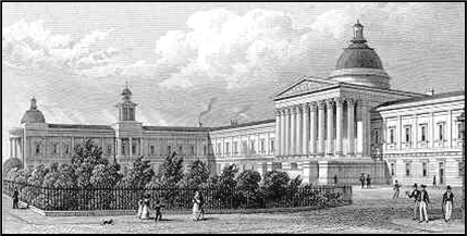 xxxxxIncidentally, James Mill was one of the founders of London University. In 1825 he took part in the discussions that led to the opening of the university, specifically founded to provide education for that class of student which was between the “mechanics” and the “enormously rich”. It also provided for students who were excluded from Oxford or Cambridge on religious grounds. The first two institutions were the non-sectarian University College, founded in 1826, and King’s College, founded by members of the Anglican Church in 1829. In 1836 a charter established an examining body with the power to grant degrees.