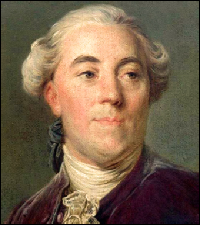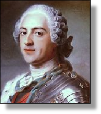 xxxxxBy the beginning of the 1770s, France was tottering on the very brink of financial and political bankruptcy. The reign of the Louis XIV, brilliant and successful though it had appeared to be, had bled the country white by its long series of wars, and the extravagance of its magnificent court at Versailles. At the same time a mania for centralised control had given absolute power to the monarchy, destroyed the political authority of the nobles, and left a yawning gap in the social system between the privileged élite - the nobility and higher clergy - and the vast mass of the working population on the land or in the towns. A fraction of the population lived in ostentatious luxury, whilst the vast majority struggled to keep alive, often facing severe food shortages. Under the Sun King’s successor, the indolent Louis XV (illustrated), there was no remission. Indeed, whilst the extravagance of the court continued to soar, and the plight of the masses worsened, the political prestige and the economic state of the country plummeted, reaching new depths with the nation’s ignominious defeat in the Seven Years’ War.