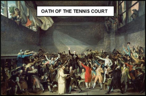 xxxxxWhen the States General assembled at Versailles in May 1789, hopes ran high, but it was on this very point - whether the three estates should sit together or apart - that the meeting quickly foundered. After complete deadlock for over five weeks, the commoners decided to go it alone. On the 17th June they declared themselves the “National Assembly” with the powers to make laws. Their meeting place then being closed by troops, they took themselves off to a nearby enclosure which was used as a tennis court. Here, by the so-called “Oath of the Tennis Court on the 20th June, they swore not to disband until they had drawn up a new constitution and seen it adopted. For a week, war and peace hung in the balance; then on the 27th Louis caved in, and ordered the two privileged estates to meet with the commoners. The Crown was no longer absolute. The National Assembly, then renamed the National Constituent Assembly, had become the effective government of France.