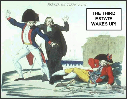 xxxxxBut within this mass of common people - workers on the land for the most part - there was a small but growing number of accomplished towns people or bourgeoisie. Made up of merchants, bankers, shopkeepers and the professional classes, these were growing in wealth and importance. Not unaware of the opinions of men of the Enlightenment, like Rousseau, Voltaire and Montesquieu, these were beginning to question the divine right claimed by the monarch, the unjust tax system, the great wealth of the Church, and the enormous privileges enjoyed by the nobility and higher clergy.