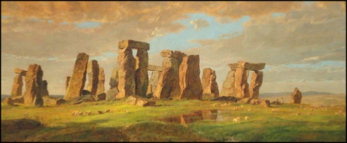 Stukeley: self portrait, 1735 – Ashmolean Museum, Oxford University, England. Stonehenge: by the American landscape artist Jasper Francis Cropsey (1823-