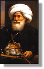 xxxxxThen in 1824, given the promise by the Sultan of more territorial gains, he played a prominent role in a war for independence which had been raging in Greece since 1821. Via a fleet of sixty vessels he sent an army to mainland Greece (arrowed on map) to assist in the overthrow of the Greek insurgents. Commanded by Ibrahim Pasha, it had overrun most of the Morea (the Peloponnese peninsular of southern Greece) in less than two years. But the rapid success of this military operation was sufficient to alarm a number of European states. The Russians, British and French came out in support of Greece, and in 1827 won the Battle of Navarino (now Pilos) against a combined Turko-
