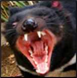 xxxxxIncidentally, Tasmania is now the only place where one can find the Tasmanian Devil in the wild, usually in remote rocky regions. A small but ferocious marsupial, their jaws and teeth are extremely powerful and they live off small animals and carrion, feeding by night. With their coarse, brown and black coat, streaked with white, and their large head, beady eyes, and menacing snarl, they certainly deserve their popular title.
