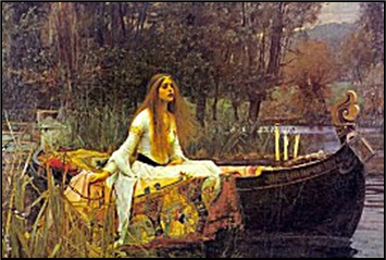 xxxxxSome of his boyhood poetry was published in his Poems by Two Brothers in 1827, and he first showed promise of his poetic talent in his Poems Chiefly Lyrical, produced in 1830. There followed his volume of poems in 1832, which included The Lady of Shalott (illustrated), the Miller’s Daughter and The Lotus Eaters, but an accompanying satirical piece on the critic Christopher North resulted in a highly unfavourable appraisal in the Quarterly Review, and this led to a somewhat muted appreciation of his works by the general public. And matters grew worse the following year with the untimely death of his friend Arthur Hallam, aged 22. This plunged Tennyson into a period of deep despair, and for the next ten years he published little, spending his time writing and in meditation. To this period belongs his The Two Voices, written in 1834, a troubled work centred around death and immortality, and a sequence of elegies which, published later under the title In Memoriam, explored in depth his own inner feelings about life and death.