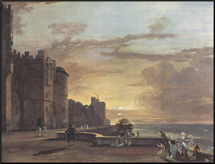 xxxxxIn the beginning, Turner’s landscapes were much influenced by Dutch art, but acquaintance with the works of the English painter Robert Cozens and the Welsh artist Richard Wilson gave his paintings a greater degree of imagination and flair, and by the early 1800s he was broadening his approach, based on the works of some of the old masters, notably the 17th century painters Nicolas Poussin, Claude Lorrain, and Aelbert Cuyp. Following his trips to the continent, however, his own, very distinctive style began to evolve, marked by the use of bold, unorthodox colours, an imaginative interpretation, and an original and subtle lighting technique in the creation of atmosphere. Later, as we shall see (1838 Va), he was to develop this style much further, and produce a series of masterpieces which anticipated impressionism and sometimes bordered on the abstract.